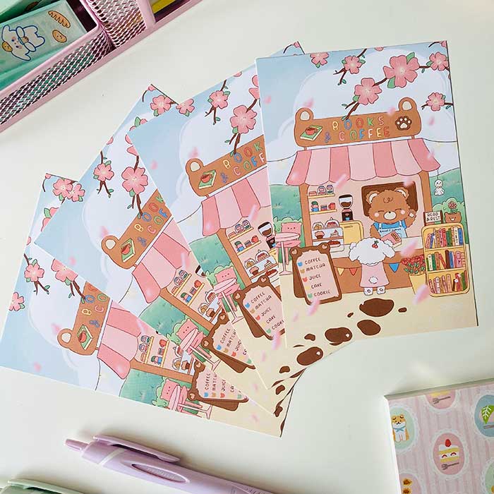 Chigusa Draws | Postales efecto nacarado con ilustraciones kawaii